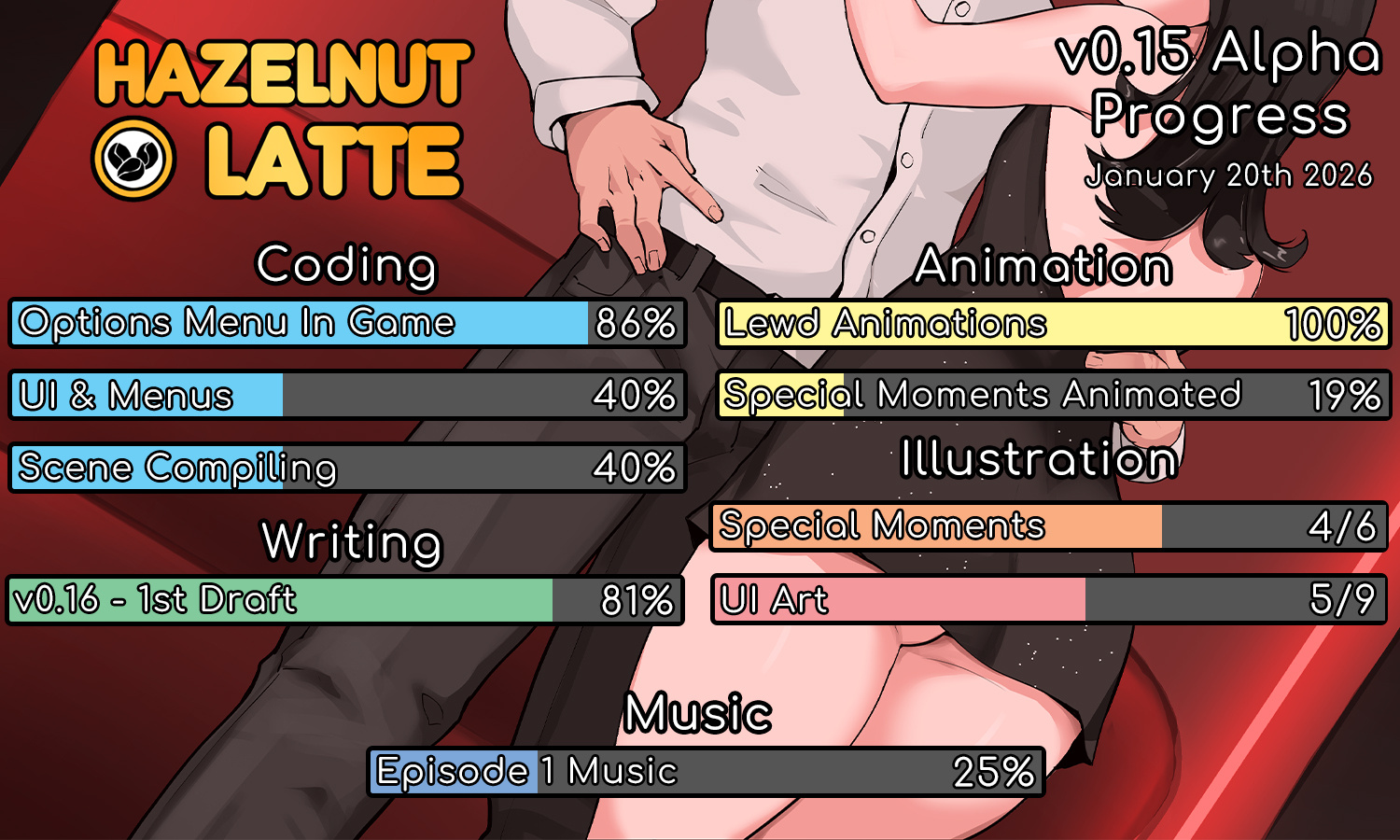 The latest release was v0.14.2 on Patreon at the end of last month. No new Itch updates since v0.11.7 back in Sept 2024.